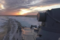В сети появилось видео сближения корабля российских пограничников с судами ВМС Украины. На кадрах показано, как российский пограничный корабль атакует украинский буксир.