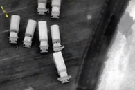 В неподконтрольном Украине районе Донецкой области недалеко от границы с РФ, где отсутствуют пункты пропуска, беспилотник миссии ОБСЕ выявил колонну из 10 грузовиков ("КамАЗ") с крытыми брезентом грузовыми отсеками.
