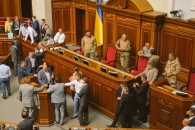 Люди Порошенко и Яценюка заблокировали трибуну, чтобы не дать заблокировать ее Тимошенко и Ляшко