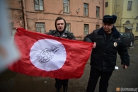 Активисты забросали здание яйцами и файерами.