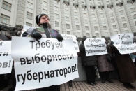 Сегодня, под зданием Кабинета министров Украины на ул. Грушевского около 2000 общественных активистов провели акцию в поддержку проведения выборов губернаторов.
