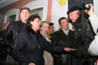 Около 17.30 под зданием мэрии увеличилось количество активистов, которые с утра не позволяют новому секретарю Мелитопольского городского совета Галине Данильченко пройти в кабинет, который занимал до этого Сергей Минько.