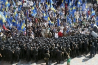 По данным наблюдателей события развивались хаотично, мирная акция протеста молниеносно переросла в массовые беспорядки