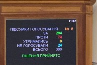 Решение поддержали 284 нардепа, против голосовали 74 политика.