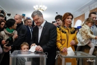 Действующий президент Украины Петр Порошенко и кандидат в президенты проголосовал на выборах 21 апреля на участке в Доме офицеров в Киеве.