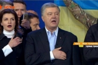 После завершения дебатов на НСК "Олимпийский" команда Петра Порошенко начала петь гимн Украины. Команда же Зеленского их в том не поддержала.