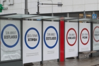 На остановках общественного транспорта в центре Таллинна появилась провокационная реклама, призывающая держаться подальше от россиян. На плакатах визуально остановка разделена на две части. Около каждой из них есть надписи крупным шрифтом: «Эстонцы стоят здесь» и «Русские стоят здесь».
