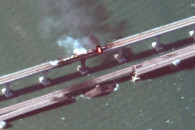 Опубликованы спутниковые снимки, на которых видны повреждения на Крымском мосту после взрыва в субботу.