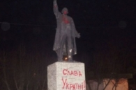 В одном из районов Красноярска был облит красной краской и расписан лозунгами солидарности с Украиной памятник Ленина.