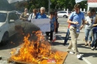 В пятницу, 16 августа, под посольством Российской Федерации в Киеве прошла акция против приостановления ввоза украинских товаров в Россию.