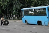 Сегодня днем в Луцке у маршрутки на полном ходу отлетело колесо.