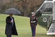 В Сеть попало видео, на котором президент США Дональд Трамп отправился к трапу самолета без супруги Мелании. Он держал над собой зонт и шел к трапу вертолета. Через некоторое время он решил остановиться и дождаться супруги, которая шла на каблуках.