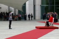 Канцлер Германии Ангела Меркель и премьер-министр Молдавии Майя Санду сидя прослушали гимны стран перед переговорами в Берлине во вторник, 16 июля. Об этом сообщают СМИ.