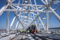 В четверг, 18 июля, на Крымском мосту завершили укладывать рельсы. Об этом пишет "Интерфакс".