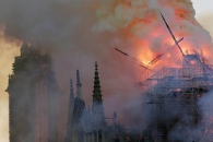 Пожар в знаменитом соборе Парижской Богоматери возник вчера вечером. Уже полностью обрушились крыша, шпиль, установленный в XIX веке, колонны в нефе и часы. Из горящего Нотр-Дама успели вынесли Терновый венец, который был одет на Иисуса Христа назадолго до распятия. Следователи уже допросили строителей, которые занимались реставрацией парижского собора.