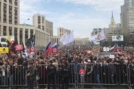На акции протеста против цензуры в интернете в Москве звучат и политические лозунги, такие как "Россия будет свободной!" и "Долой царя!"