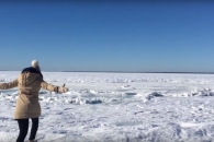 Житель Массачусетса Райан Кэнди снял на видео частично замерзший из-за непогоды океан.