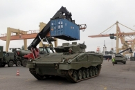 В Рижский порт прибыла военная техника испанской армии: танки Leopard, боевые машины пехоты Pizarro, а также транспорт технической поддержки и логистики.