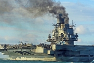 Самолет не успел затормозить на палубе крейсера и рухнул в море.