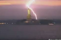 В Нью-Йорке во время сильной грозы молния ударила в факел Статуи Свободы.