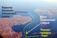 В сети появилось фото последствий тарана турецким сухогрузом "Лира" опоры строящегося моста через Керченский пролив.
