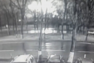На кадрах, снятых камерой наблюдения, видно, как самолет резко снижается и скрывается за деревьями, затем происходит сильный взрыв.