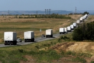Последний грузовик российского конвоя, доставившего в Луганск гуманитарную помощь, пересек границу и вернулся на территорию России.