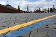 В Москве третий день подряд неизвестные продолжают выкрашивать что-нибудь в цвета украинского флага.