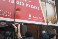 В сети появилось еще одно видео, на котором показан разгром митингующими отделения российского "Альфа-Банка", расположенного на Крещатике.