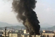 Над фабрикой, расположенной в городском округе Лишуй, поднимается столб дыма.