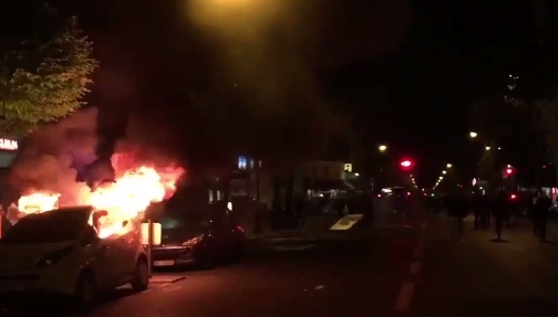 По информации зарубежных СМИ массовые беспорядки в Париже продолжаются, были подожжены несколько автомобилей.