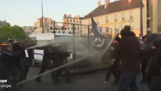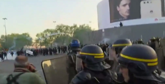 Постепенно мирный протест перерос в столкновения с полицией представителей левых и антифашистских группировок, возмущенных выходом во второй тур кандидата от Национального фронта Марин Ле Пен.