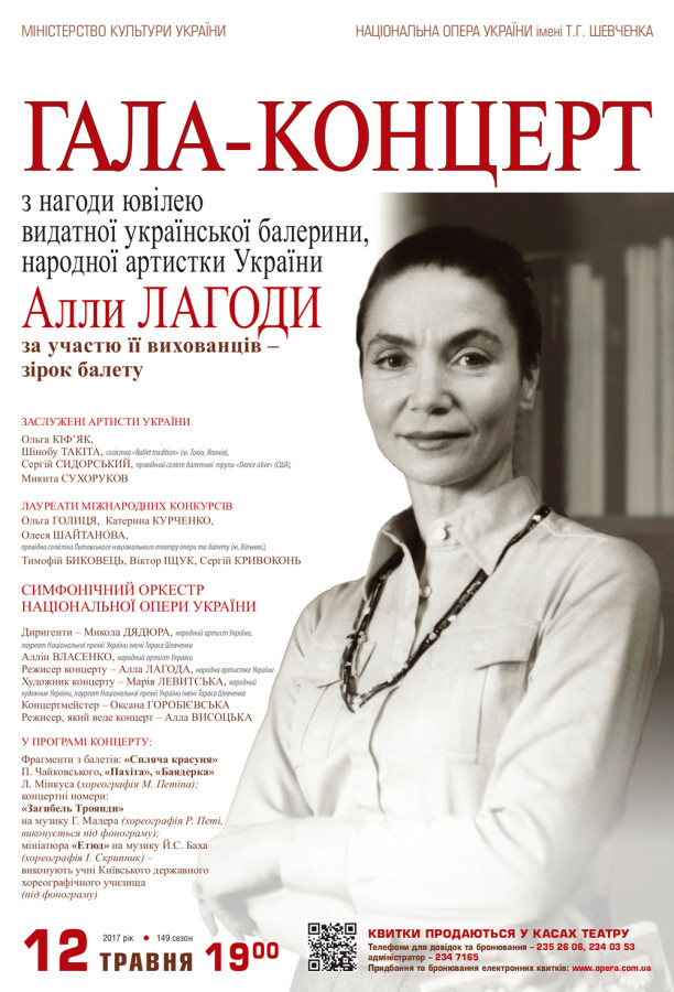 12 мая – «Гала-концерт по случаю юбилея Аллы Лагоды» с участием ее воспитанников и приглашенных звезд мирового балета
