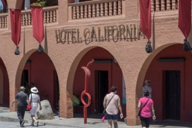 Гостиница "Калифорния" в Тодос-Сантосе открылась в 1950 году - за четверть века до выхода одноименных альбома и сингла Eagles. С тех пор она сменила несколько названий. В 2001 году заведение купила семейная пара из Канады и, как утверждают Eagles, начала использовать его историческое наименование в маркетинговых целях.