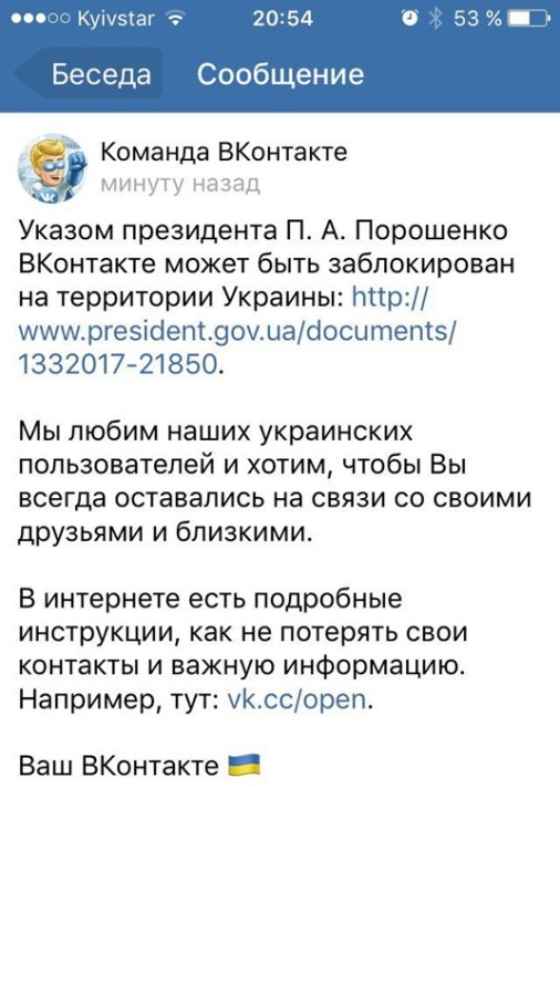 - Мы любим своих украинских пользователей и хотим, чтобы вы всегда оставались на связи со своими друзьями и близкими. "ВКонтакте" всегда позиционировал себя вне политики, наш сайт — это прежде всего удобная площадка для общения, где каждый может выразить свою точку зрения вне зависимости от страны и национальности.