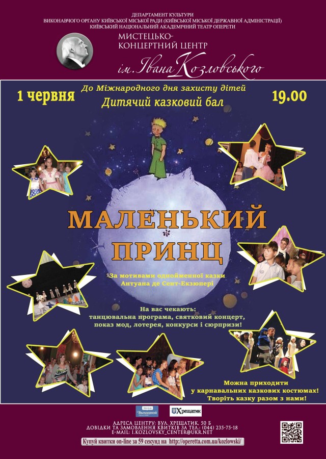 1 июня - в Международный день защиты детей - в Центре Ивана Козловского Национальной оперетты Украины (Крещатик, 50-б) состоится сказочный детский бал «Маленький Принц» по мотивам книги Антуана де Сент-Экзюпери.