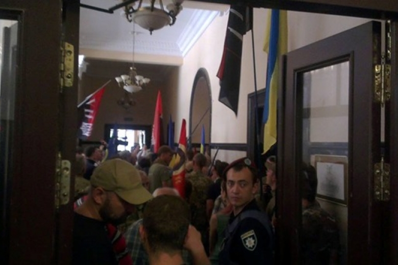Перед голосованием бойцы добровольческих батальонов пробились в зал заседаний Киевского горсовета. Депутат от партии Свобода Юрий Сиротюк настаивал, чтобы данное решение был принято сразу в целом, а если и есть правки, чтобы они рассматривались сразу. Однако Киевсовет не поддержал это предложение, а мэр Киева Виталий Кличко предложил доработать решение и принять его в целом на следующем заседании горсовета. В этот момент в зал заседаний проникли несколько человек в камуфляжной одежде. В заседании был объявлен перерыв.
