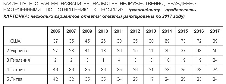 Число респондентов, которые считают Украину самой враждебно настроенной по отношению к России страной, выросло до максимума за все время исследований, и составило 50%.