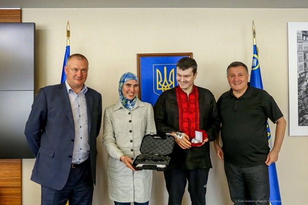 Министр внутренних дел Аваков вручил Амине Окуевой пистолет Glock-43. Ее мужу. Адаму Осмаеву, на которого было совершено покушение, Аваков подарил специальные часы. Об этом сообщил сам глава МВД на Facebook.