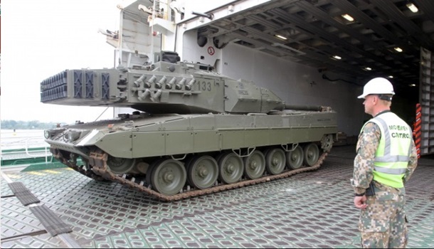 "Министерство обороны Латвии сообщает, что в порт пришел военный груз: танки Leopard, боевые машины пехоты Pizarro, а также транспорт технической поддержки и логистики. В воскресенье и понедельник, 12 июня, технику перебросят на военную базу в Адажи, где будут дислоцироваться подразделения испанской армии", – говорится в сообщении.