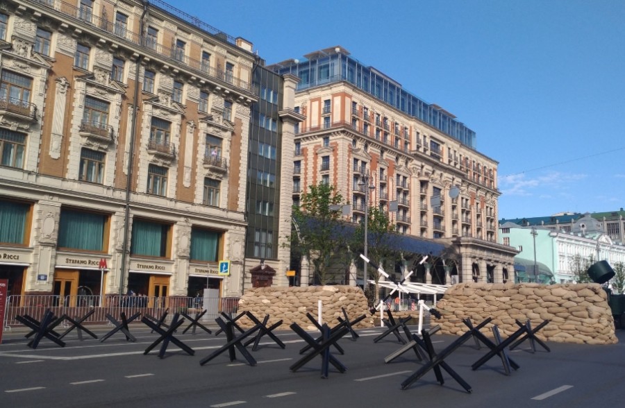 В Москве на Тверскую , где должен был состояться антикоррупционный митинг российского оппозиционера Алексея Навального, привезли мешки с песком, противотанковые ежи и технику. По замыслу властей, таким образом показываются разные исторические эпохи России.