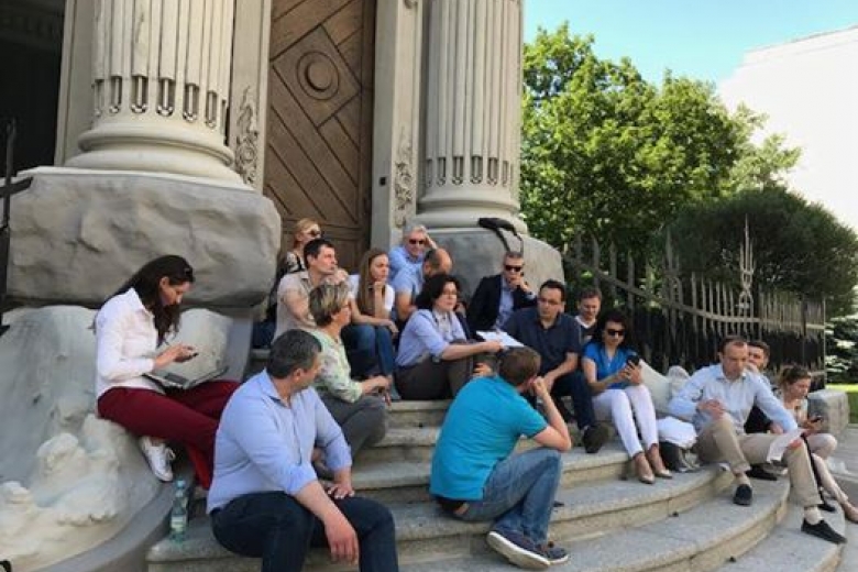 "Фракция работает на лестнице Дома с химерами (напротив АП – ред.)", – написала она.