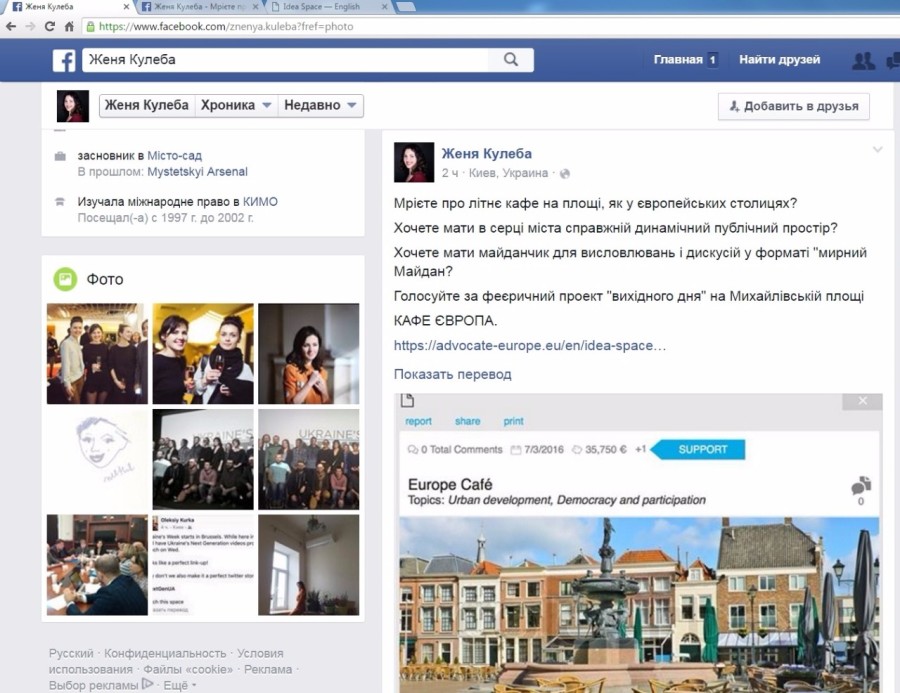 Тільки зараз стали відомі істинні наміри активістки Євгенії Кулеби, яка зробила собі ім’я у соцмережах на захисті скверу Небесної Сотні. На його місці вона хоче спорудити… кафе