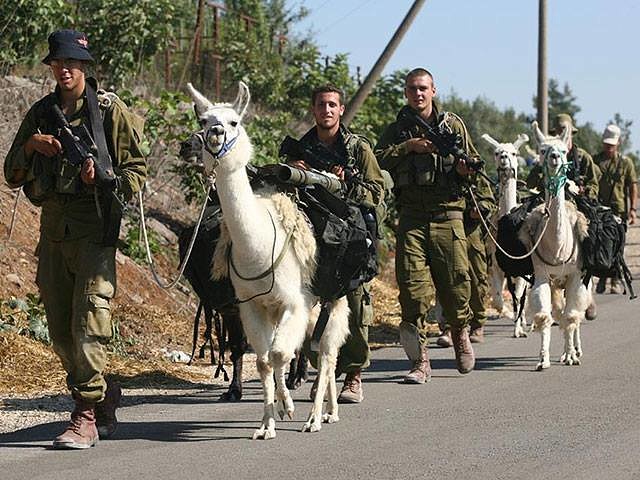 Напомним, израильская армия использовала лам для перевозки амуниции с 2000 годов. Ламы не боятся громких звуков, быстро привыкают к новой обстановке и легко передвигаются по гористой местности. До этого в армии пользовались верблюдами, ослами и мулами.