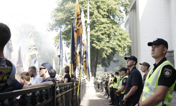 "Колонна Национального Корпуса и Национальных Дружин утром 13 июля вышла под стены Верховной Рады требовать полной отмены депутатской неприкосновенности. Активисты жгут файеры и образовали под парламентом настоящий дымовой занавес", - заявили в пресс-службе Национального корпуса.