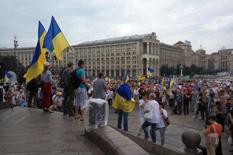 В Киеве партия Михаила Саакашвили Движение новых сил собрала на Майдане Незалежности вече, чтобы обсудть лешение политика украинского гражданства.