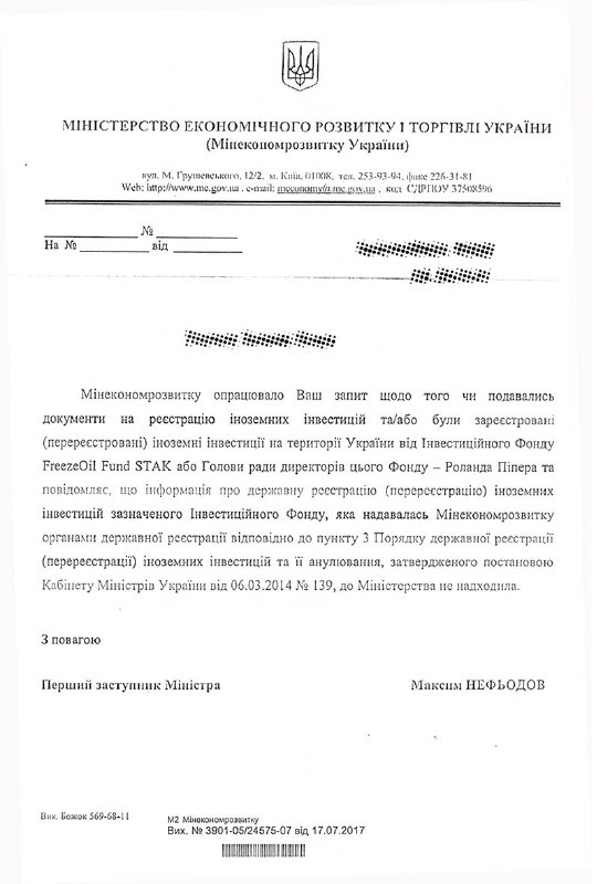 Все попытки найти офис фонда Freeze Oil в Украине оказались безуспешными. В письме Минэкономразвития Украины прямо указано об отсутствии информации об иностранных инвестициях в Украину от Freeze Oil.