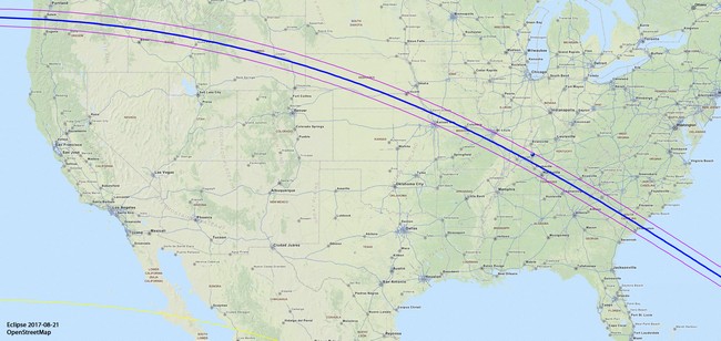 Затмение продлится два-три часа и пройдет от побережья до побережья, от Орегона до Южной Каролины. Частичное затмение можно будет увидеть на всем континенте, а фаза полного затмения продлится 2 минуты 40 секунд.