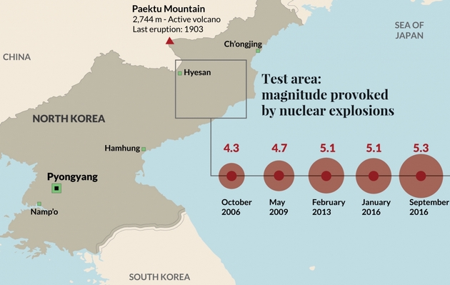 Южнокорейские аналитики полагают, что до очередного ядерного взрыва на испытательном полигоне Пунгери в Северной Корее остается менее двух недель