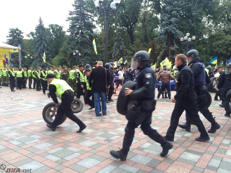Как отмечается, митингующие за удешевление растаможки автомобилей с еврономерами перед двухчасовым перерывом в работе Рады принесли на площадь перед зданием парламента шины и канистры. Полиция усилила охрану Рады.